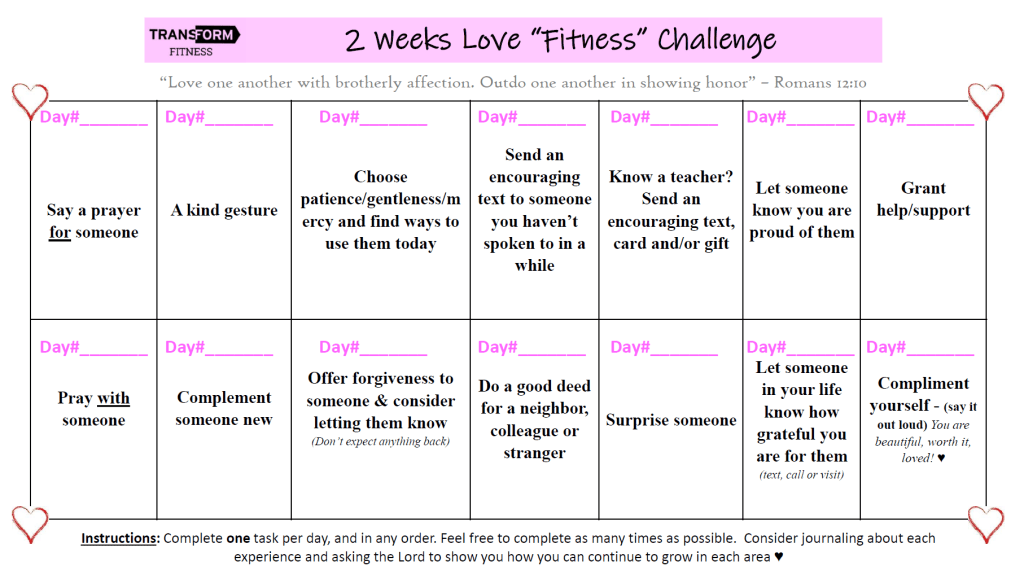 For the last 2 weeks of February, I initiated a love “fitness” challenge with some of my Christ sisters. This exercise has caused me to be more intentional about loving on those in my world. Each day, I get to think more deeply of ways that I can challenge myself to change my usual routine so that I can bring goodness to others. And in this process I have learned that I need to keep growing in compassion. Interestingly I learned that compassion is a form of love (Thank You Jesus for never leaving me stuck in old mindsets. Thank You for making me a living testimony of Your great love)